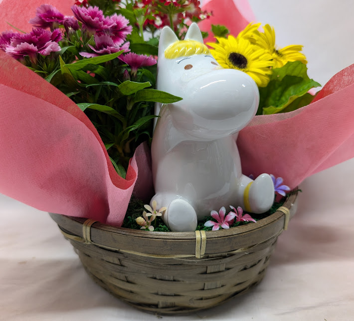 おすすめの季節の花苗をセレクトし、人気のムーミンキャラクターのフローレンのお庭のように仕立てました!